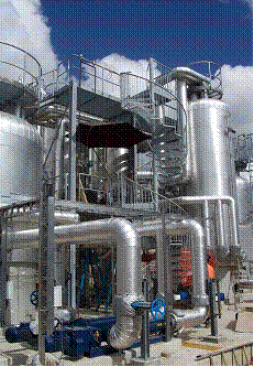 泄压闪蒸罐(1-3bar):作用为1、由于压力下降导致细胞破碎;2、部分热水在闪蒸罐中成为蒸汽,然后循环利用����� �������Ƴ������������ �������Ƴ�������,从而可以节能。闪蒸罐的作用是提供部分热水����� �������Ƴ����������� �������Ƴ������������ �������Ƴ�������迅速汽化和气液分离的空间。压力:一般����� �������Ƴ����������� �������Ƴ�������为1.5-2bar,温度:约100℃,停留时间1.5h。